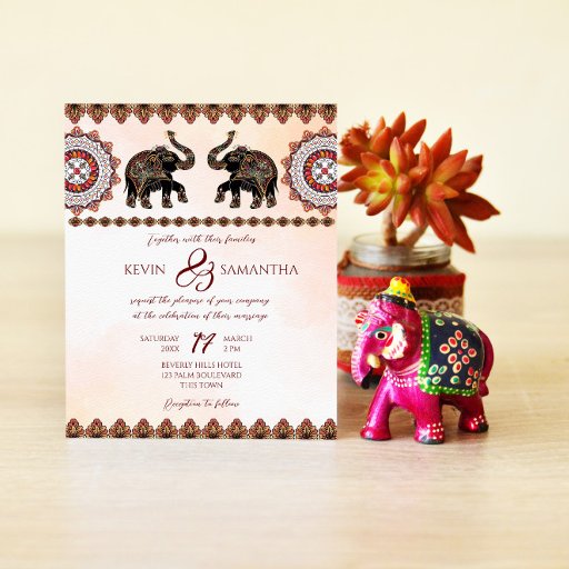 Adesivo Quadrado Casamento índio de elefantes ornamentados personal