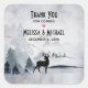 Obrigado de casamento, vocês colam com uma imagem de aquarela com uma rena preta de silhueta, entre alguns pinheiros. Esquema de cor neutra a preto e branco.