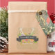 Use para selos de envelopes ou sacos de presente de favor para o seu chá de panela ou recepção de casamento. Perfeito para um casamento ao ar livre. Se o seu dia for planejado para ser informal e na natureza, como num parque, num lago ou na floresta, esse estilo antigo de celeiro será ajustado. Um pano de fundo de papel de estilete com sua coloração castanha macia natural tem um elemento design de explosão solar vintage com uma faixa de fita de quadro que diz, "Sr. & Sra." As flores silvestres de cor alagada à mão, cor-de-rosa, lavanda, laranja roxo e amarela, são pintadas por Audrey Jeanne Roberts. Eles são emparelhados com um conjunto de veados e pergaminhos de guincho de canto de folha desenhados à mão. No verso está o mesmo design com seus nomes no giz na faixa.