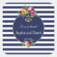 Adesivo Quadrado Casamento Tropical Floral Luau Marinho Blue Stripe