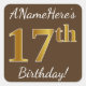 Adesivo Quadrado Castanho, Faux Dourado 17º Aniversário + Nome Pers