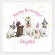 Adesivo Quadrado Celebração de Cães de Pet Birthday | Rosa