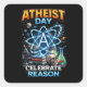 A bold and energetic tribute to Atheist Day showcases science, knowledge, and rational thought through glowing atomic symbolism and classic scientific tools.