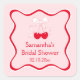 Torne o seu chá de panela inesquecível com a nossa cereja rosa vermelha personalizada no Arco superior Padrinho quadrado de favor do Chá de panela. Perfeito para celebrar a noiva que "enche a cereja em cima" com uma cereja no chá de panela ou um chá de panela de Namorados doce. Ideal para um beijo no chá de panela de despedida, este adesivo adiciona um toque encantador para amarrar os arcos de ideias do chá de panela. Melhore os arcos temáticos do chá de panela em vermelho ou eleve as ideias do chá de panela temático do arco.