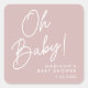 Etiquetas simples de chá de fraldas com "Oh Baby!" exibidas em um roteiro preto em negrito com fundo rosa empoeirado. Personalize os chás de fraldas mínimos com o nome e a data da mãe. Os adesivos empoeirados do chá de fraldas de rosa são perfeitos para chás de fraldas de meninas!