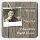 Uma superfície ardida de madeira intacta é o fundo deste adesivo de chá de panela inspirado pela rústica. Uma linha de clothesline é pendurada através dos conselhos com uma foto mantida por um prego. Adicione uma foto e um texto personalizado à direita. Maneira divertida de enviar aos convidados uma mensagem especial de obrigados ou qualquer mensagem desejada. Excelente como invólucro ou selos de encapsulamento, use favores como um obrigado rápido ou personalize-o para ajustado das suas necessidades. Personalizável para qualquer ocasião, como chás de casamento, chás de fraldas ou qualquer outra parte. Disponível com produtos correspondentes.