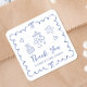 Os adesivos bonitos para seus favoritos para festas chás de fraldas e cartas de agradecimento com um quadro francês azul ondulado adornado com arcos, ilustrações brancas desenhadas à mão de corações, estrelas, bolo e decoração de berçário, e "Obrigado" mostrados em um roteiro azul brincalhão.