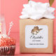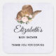 Festa favor obrigado que você cola com um design giro criado com aquarelas com um chapéu de vaquinha marrom com um buquê de flores rosa.