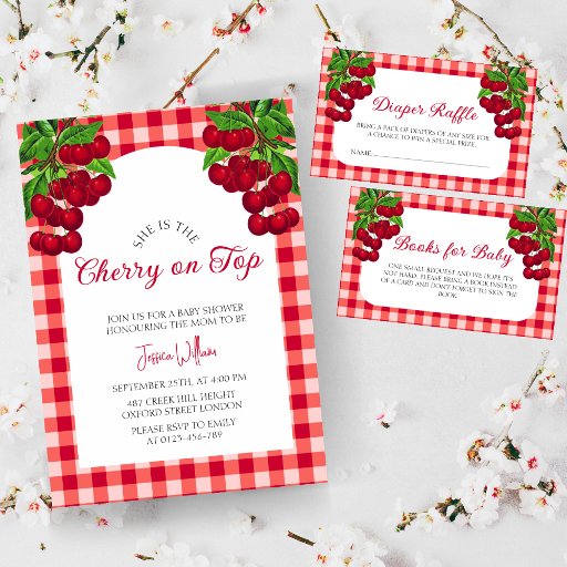Adesivo Quadrado Cherry no topo do Chá de fraldas de Xadrez Gingham