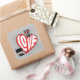 Confira Chibi Catwomen tocando Chibi Batman neste gráfico adorável, apresentando um coração vermelho gigante com a palavra "Amor".
