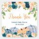 Este adesivo de agradecimento aquarela fofo e caprichoso apresenta arranjos florais e abóboras em laranja rosa, azul bebê e azul marinho. O texto combina fontes manuscritas e sem serifa para um visual moderno e elegante. É perfeito para um chuveiro de noiva de outono. Gráficos por www.etsy.com/uk/shop/SunflowerDayLove