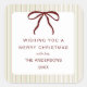 Classic Stripes Red Bow Merry Christmas Square Sticker.