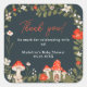 Adicione um toque de capricho ao seu chá de fraldas com nosso charmoso obrigado de cogumelos que você cola. Este design delicioso apresenta cogumelos vermelhos e brancos pintados manualmente, entre folhas verdes e flores delicadas, todos colocados contra um fundo verde-floresta profundo. A vibrante e encantadora ilustração da floresta cria um quadro mágico para a mensagem do seu obrigado personalizado. Perfeito para selar envelopes, decorar favoritos para festas ou adicionar um toque especial ao decoro do chá de fraldas, esses adesivos trazem um elemento alegre e inspirado na natureza para sua celebração. Ideal para qualquer floresta ou chá de fraldas natural.