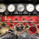 Os maquinistas de comboios a vapor veem a partir da placa de apoio dos manômetros e comandos do comboio.