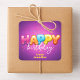 Liberte um toque de festa em qualquer pacote com este adesivo quadrado vibrante! Um fundo roxo rico prepara o palco para o deslumbrante "FELIZ" em letras bolha multicoloridas e divertidas, coroado com confetes de estrelas festivas. Abaixo, "aniversário" dança em escrita elegante, criando um equilíbrio perfeito de diversão e estilo. O nome do espaço reservado é completamente personalizável, permitindo que você adapte este design para qualquer celebração.