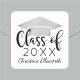 Termine os envelopes de formatura com este selo de formatura moderno, apresentando um ícone de gorro de prata e uma fonte “Turma de” em negrito. Personalize o ano e o nome para um visual sofisticado e coordenado em convites, correspondência de festa e cartões de agradecimento. A tipografia preta limpa em branco combina com qualquer cor da escola.