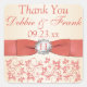 Este champanhe em forma de quadrado de 1,5" e o obrigado do favorito floral coral que você cola tem uma fita IMPRESSA e um arco com um medalhão de prata FAUX com um monograma inicial que corresponde ao convite de casamento mostrado abaixo. É uma maneira perfeita de obrigado aos convidados, ligando-os aos seus favores de casamento ou à embalagem de bolachas. Se você precisar de outras formas de adesivo ou mudanças de cor, envie um e-mail para niteowlstudio@gmail.com. ***PARA MELHORES RESULTADOS, envie-me um e-mail se quiser um tamanho diferente de adesivo ou se quiser uma fonte diferente. As margens de segurança nos autocolantes são bastante grandes, pelo que, se se estenderem para além deles, o vosso texto poderá ser cortado.