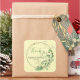Mostre sua gratidão com este design chique disponível em dois tamanhos. Ele apresenta uma coroa de folhagens e pequenas flores brancas em tons sobre um fundo amarelo pastel.