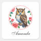 Adesivo Quadrado Coruja de Aquarela Decorativa com Rosas