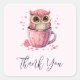 Adesivo Quadrado Coruja rosa-branca numa taça Obrigado
