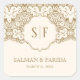 Adesivo Quadrado Creme Dourado Lace Monograma Favor de Casamento