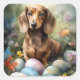 Adesivo Quadrado Dachshund com Ovos de Páscoa