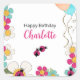 Personalize este bonitinho adesivo da festa de aniversário com o nome do seu filho. Design quadrado com flores brancas e brancas e acentuado com joias cor-de-rosa-escuro na sua escolha de dois tamanhos. Criada em parte com gráficos pela Trina Clark comprada em digiscrapkits.com