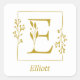 Lindo selo / adesivo apresenta moldura botânica desenhada à mão a ouro com letra botânica E no centro. Personalize com nome