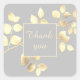 Adesivo quadrado de agradecimento cinza claro com folhas douradas para letras chiques, presentes elegantes, casamento sofisticado e para aniversário lindo e para pequenas empresas.