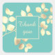 Adesivo quadrado de agradecimento de folhas douradas com verde claro romântico para cartas chiques, presentes elegantes, casamento sofisticado, e para lindo aniversário e para pequenas empresas.