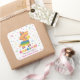 Um adesivo decorativo com tema mexicano que tem um burro pinata giro com um chapéu sombrio. Muitos confetes coloridos de triângulos e fitas voando ao fundo. A palavra "Gracias" que significa "Obrigado" não é editável. Perfeito para um chá de fraldas de temas mexicano ou Fiesta. Personalize com sua mensagem nos modelos de texto fornecidos.