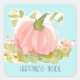 Um adesivo de "dentro de felicidade" decorado com uma abóbora rosa do estilo porcelana numa cama de outono folhas pintadas manualmente com aquarela em um fundo azul turquesa com texto que você pode editar para ajustado de suas necessidades.