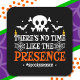 Esta engraçada design de Halloween é perfeita para uma estação assustadora e assustadora para todos que amam o Halloween! Excelente para uma festa de fantasia de Halloween para crianças ou para mostrar seu espírito de Halloween o ano todo! Apresenta 'Não há tempo como a presença' uma imagem divertida de espírito fantasma da piada Feliz de Halloween, trocadilho fofo assustador e bússola.