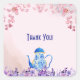 Um adesivo encantador para um pop de cor nos seus presentes e envelopes. Pétalas cor-de-rosa caindo em uma equipe azul e flores roxas. Um fundo rosa pálido é o pano de fundo perfeito.