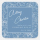 Adesivo Quadrado Dusty Blue Botanic Weding Favor Obrigado