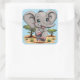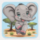 Adesivo Quadrado Elefante Bebê Pulando Feliz em Savana Africana
