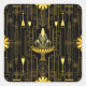 Gatsby gold and black, waterfall with champagne glasses and flowers. Decorative lines and shapes seamless design.