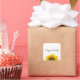 Feliz adesivo floral redondo de aniversário, com uma imagem de girassol amarela de espasmo e um fundo branco. Com a elegante letra preta, você pode adicionar seu próprio texto. Uma adição clássica aos seus cartões de aniversário e favores.