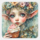 Adesivo Quadrado Elf Adorável com um Cupcake