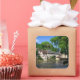 Galeria de fotos de souvenir quadrado do castelo e da aldeia histórica de Ségur-le-Château, com suas casas de meia altura ao lado do rio Auvézère, em Limousin, França.