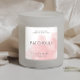 Deixe seus produtos brilharem com este Design de Etiqueta de Vela Rosa Elegante. Esta etiqueta quadrada feminina apresenta fontes de caligrafia e tons delicados de aquarela em rosa, perfeitos para criar embalagens elegantes que seus clientes não poderão resistir. Você pode personalizar esta etiqueta de jarro de vela com o nome da sua empresa e o nome da fragrância e criar adesivos personalizados para seus jarros ou latas.