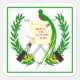Bandeira da Guatemala. A casaco de armas guatemalteca inclui o Quetzal Resplendente, a ave nacional da Guatemala que simboliza a liberdade; um pergaminho com a data da independência da América Central em relação à Espanha, 15 de setembro de 1821; espingardas cruzadas, indicando a vontade da Guatemala de se defender pela força, se necessário; uma coroa de louros de baía, símbolo da vitória; e espadas usadas, representando honra.