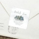 Este design apresenta um selo de envelope de Natal, com um endereço de devolução, tipografia de texto circular, com árvores de pinheiro em aquarela, uma folhagem elegante, clássico tradicional, um simples vintage, floresta silvestre, feriado, cena de inverno.