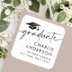 A graduação branca moderna retorna rótulos de endereço com o texto "formando" em um script de estilo manuscrito e um boné de formatura. O nome e o endereço estão alinhados à direita. Todas as cores são editáveis na ferramenta design.