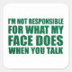 Se você gosta de citações sarcásticas engraçadas ou designs humorísticos excelentes, este slogan original "Eu não sou responsável pelo que meu rosto faz quando você fala" é para você. É um presente excelente para sua família, amigos ou para você mesmo! Esta design é ideal para quem ama sarcasmo e humor. Se você gosta dessa citação engraçada, veja trabalhos de arte mais parecidos na loja Omitay. Fique seguro e obrigado você por apoiar um artista local.