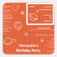 Adesivos de aniversário temáticos espaciais fofos para a festa de aniversário do seu filho. Adicione-os às lembrancinhas da sua festa ou dê-os como um presente. O fundo representa uma tela de computador laranja onde todos os elementos em branco aparecem, incluindo o texto para você personalizar. Personalize com a sua própria mensagem. Ilustrado e desenhado por Patricia Alvarez.