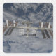 A Estação Espacial Internacional, recuada por uma Terra azul e branca.