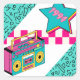 Tudo desde a arte até as cores reais usava gritares 90! Esta design está disponível todos os anos na minha loja, assim como toneladas de artigos coordenadores. Aproveite o estéreo, a estrela e o rosa-quente, rosas claro e focas, como você fez há algumas décadas!