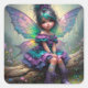 "Fada do Flor do Crepúsculo" Uma fada branca com asas borboletas espumantes senta-se graciosamente num tronco de mosca numa floresta encantada. Seu vestido rufflado combina tons ricos de roxo, lágrimas, e lilás, combinando seu cabelo listrado e asas brilhantes. A atmosfera mágica está repleta de flores brilhantes e luz sonhadora, capturando a beleza serena de uma floresta crepústica.