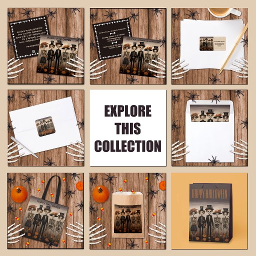 Adesivo Quadrado Família Esqueleto Feliz Dia das Bruxas